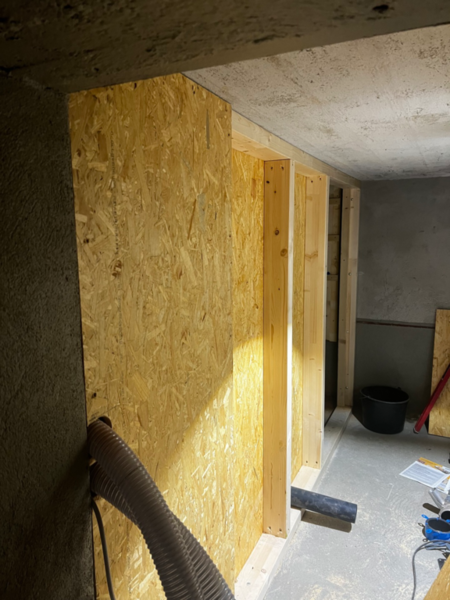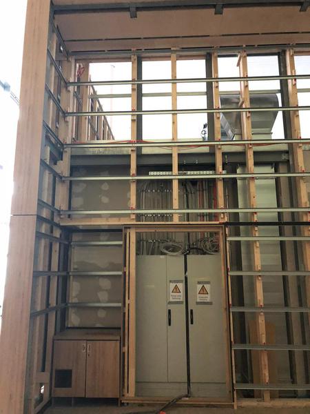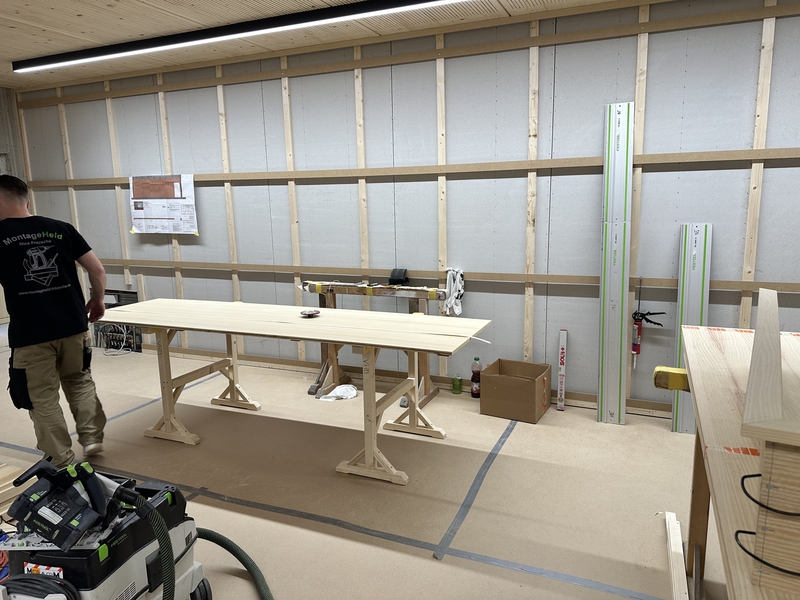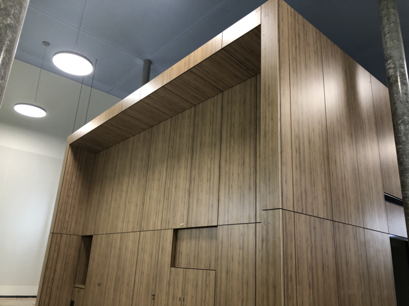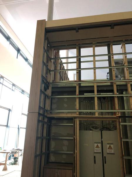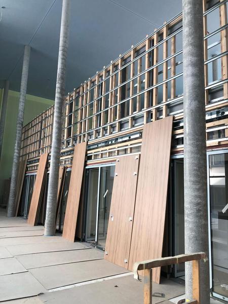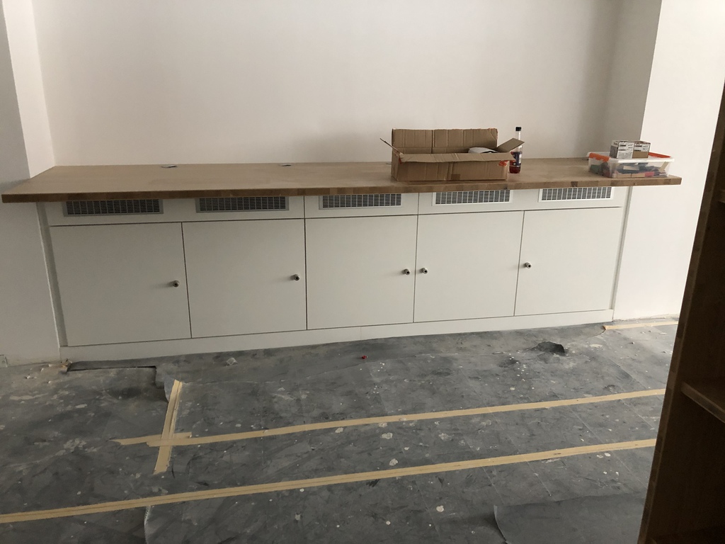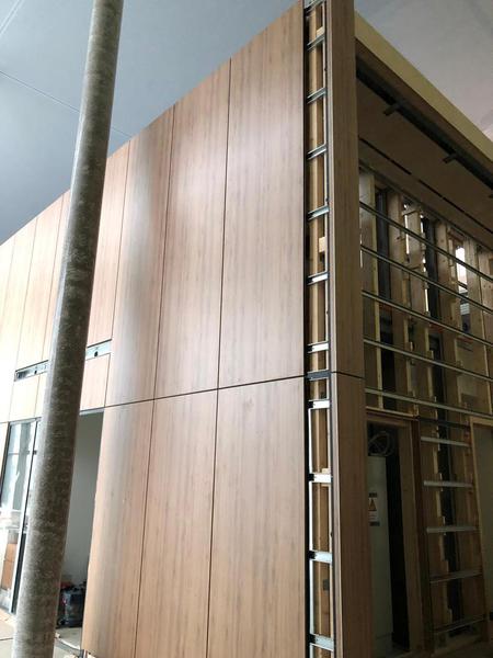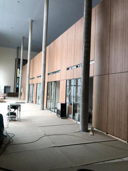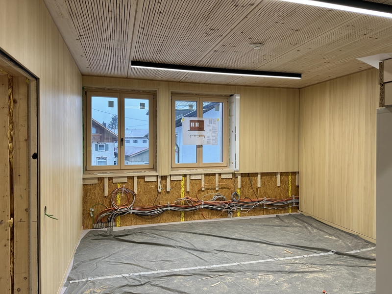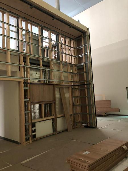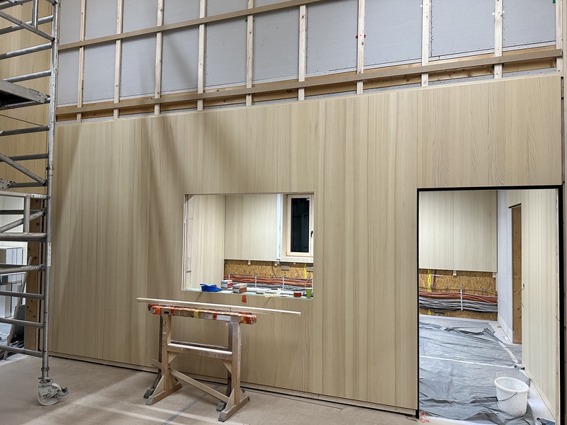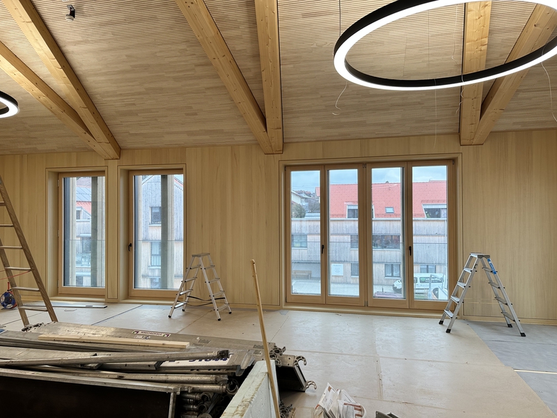 Wandverkleidung im Saal und den Büros mit Anpassarbeiten