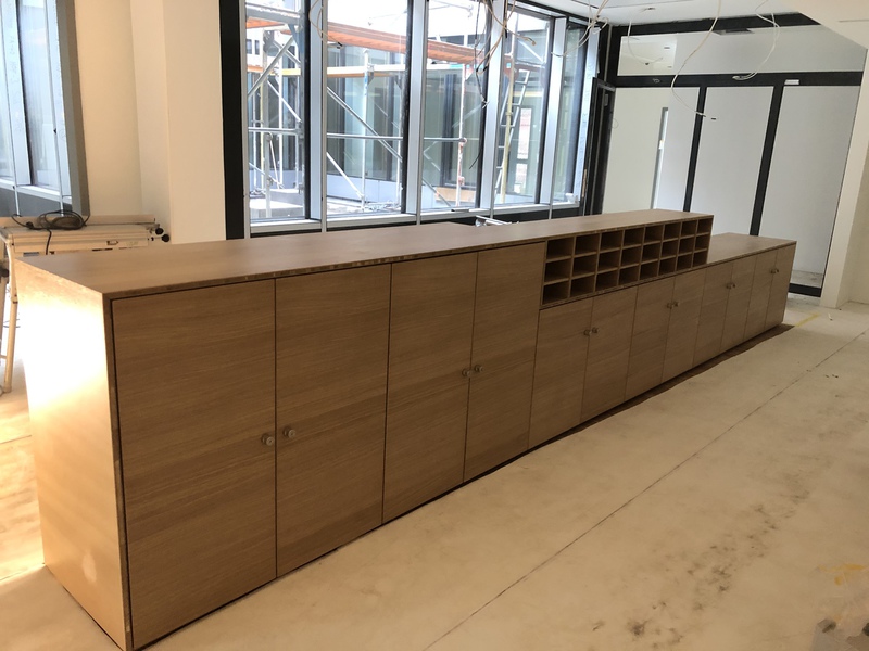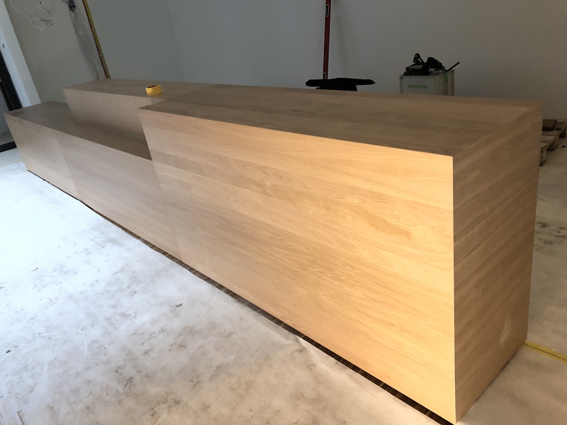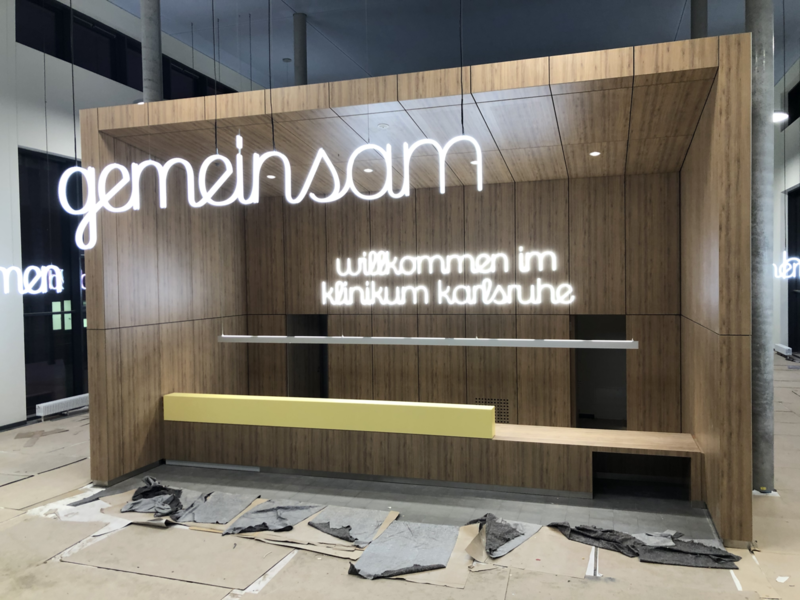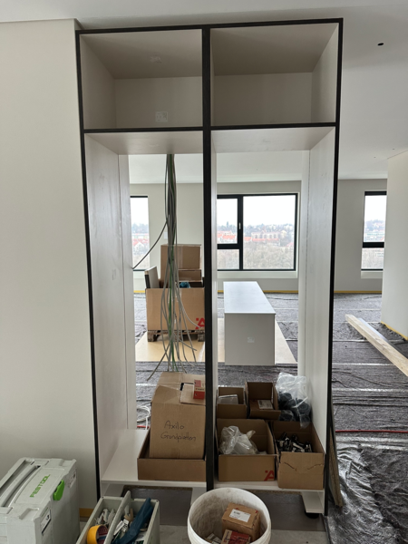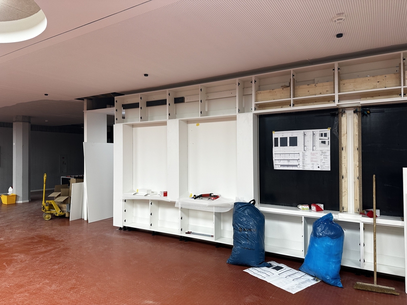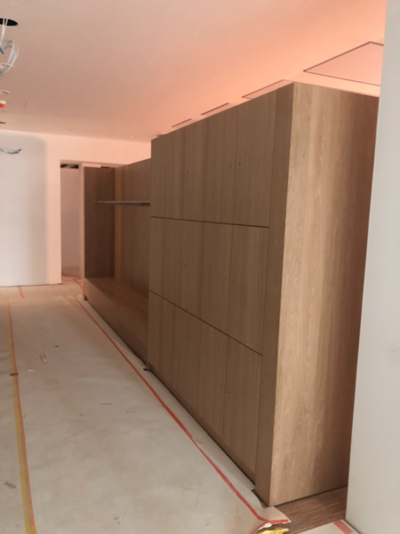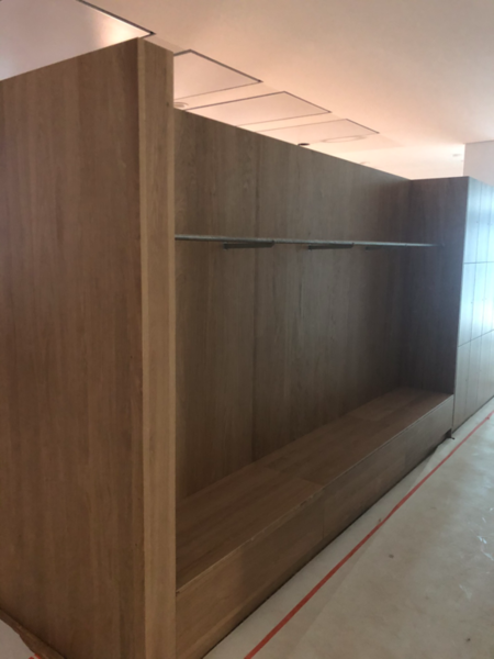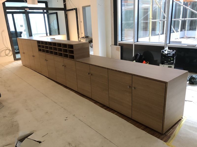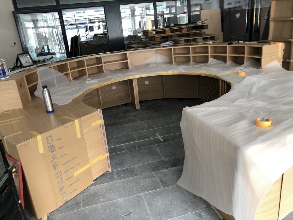 Möbelmontage in den Öffentlichkeitsbereichen mit Vitrinen als Wandabwiklungen und Formteilen