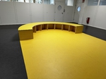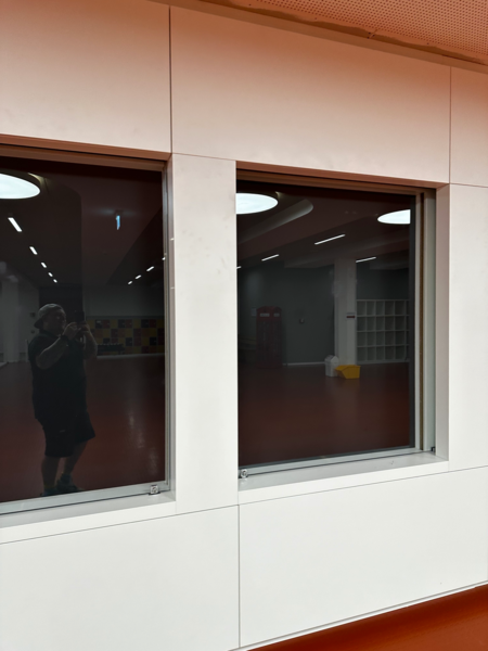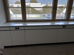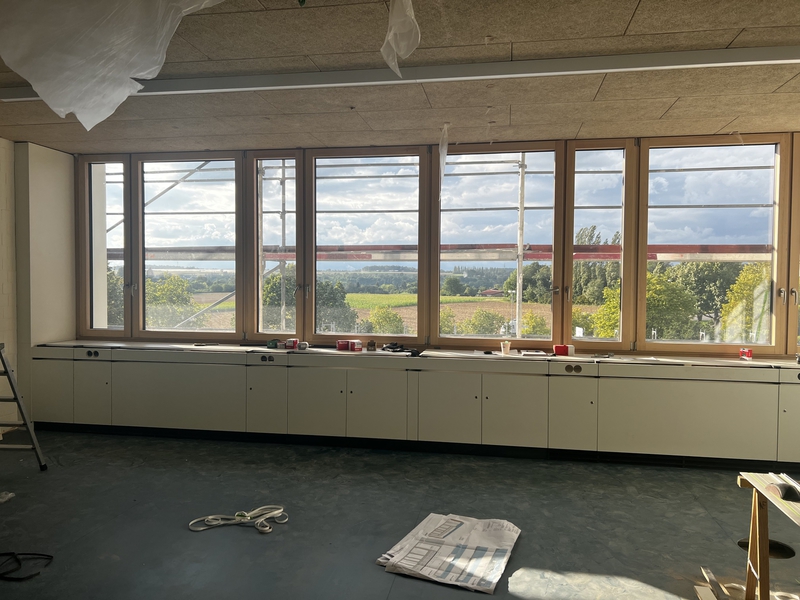 Klassenzimmer mit Fenster und Heizungsverkleidung